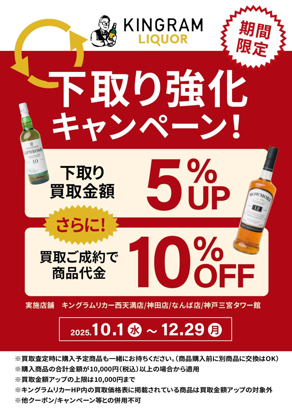 ※キングラムリカーHP内の買取価格表に掲載されている商品は買取金額アップの対象外